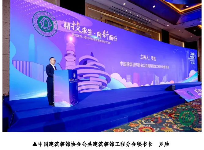 會議由中國建筑裝飾協(xié)會公共建筑裝飾工程分會秘書長羅勝主持,會議旨在總結推廣建筑工程技術與項目管理經(jīng)驗成果,搭建全產(chǎn)業(yè)鏈合作交流平臺,加快發(fā)展建筑裝飾行業(yè)新質(zhì)生產(chǎn)力。中國建筑裝飾協(xié)會會長王中奇代表主辦方宣布大會啟幕,山東省住房和城鄉(xiāng)建設廳黨組成員、副廳長王潤曉致歡迎詞。