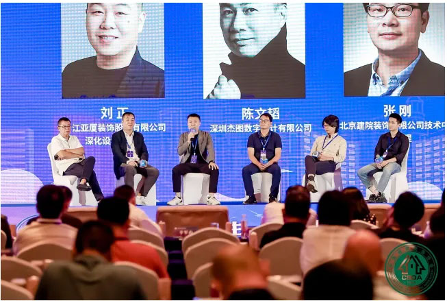 來自浙江亞廈裝飾股份有限公司、深圳杰圖數(shù)字設計有限公司等 5 家設計企業(yè)的設計專家,圍繞深化設計在建筑裝飾項目施工中地位及作用展開了主題對話、專題論壇。