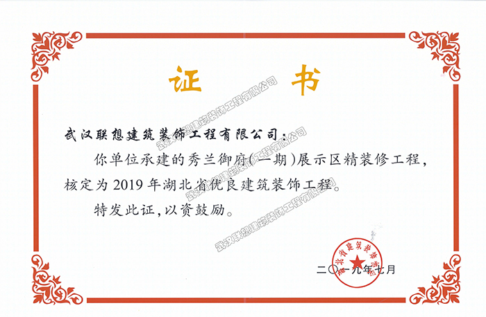 2019年湖北省優(yōu)良建筑裝飾工程秀蘭御府(一期)展示區(qū)精裝修工程)