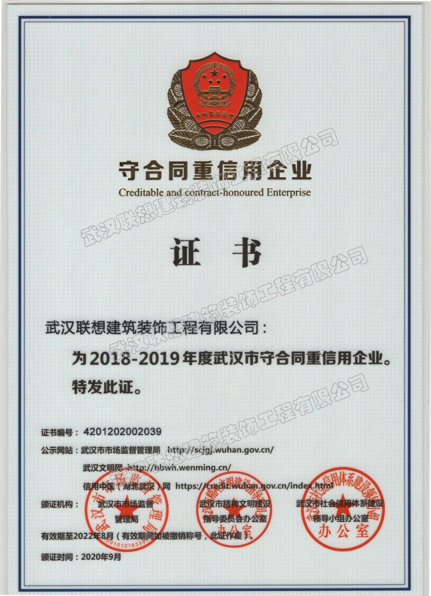 2018-2019年度武漢市守合同重信用