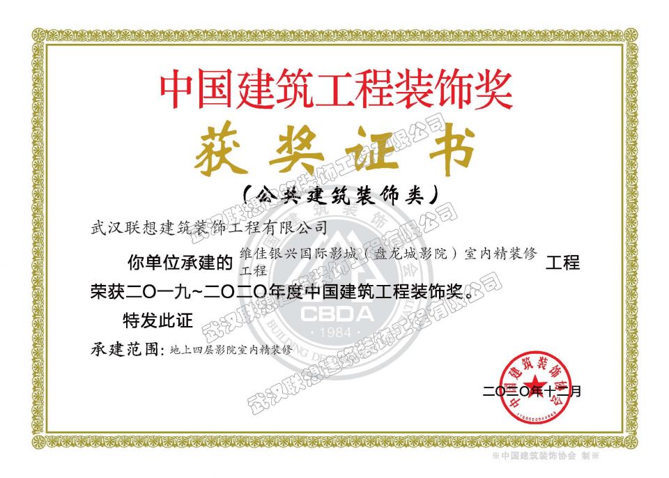 2019-2020年度中國建筑裝飾獎(維佳銀興國際影城(盤龍城影院)室內(nèi)精裝修)