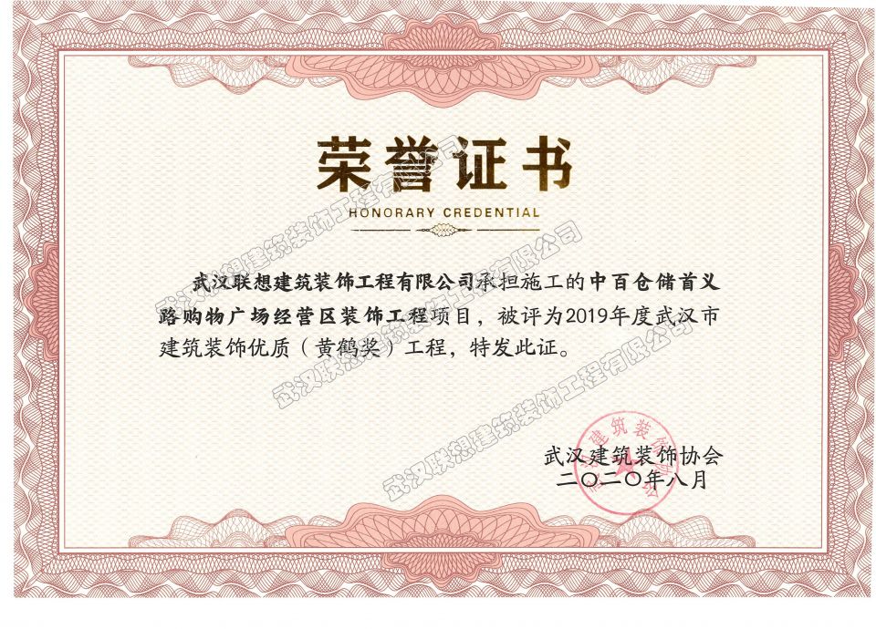 2019年度武漢市建筑裝飾工程黃鶴杯(中百倉(cāng)儲(chǔ)首義路購(gòu)物廣場(chǎng)經(jīng)營(yíng)區(qū)裝飾工程)