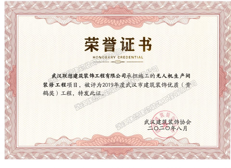 2019年度武漢市建筑裝飾優(yōu)質(zhì)工程黃鶴杯(無(wú)人機(jī)生產(chǎn)車間裝修工程)