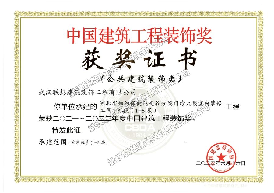 2021-2022年度中國建筑裝飾獎(jiǎng)(湖北省婦幼保健院光谷分院門診大樓室內(nèi)裝修工程1標(biāo)段(1-5層))