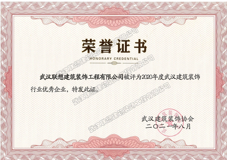 2020年度武漢建筑裝飾行業(yè)優(yōu)秀企業(yè)