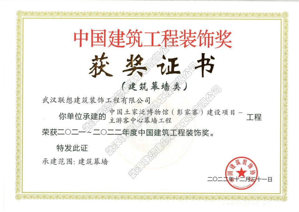 2021-2022年度中國建筑工程裝飾獎(中國土家泛博物館(彭家寨)建設(shè)項目-主游客中心幕墻工程)