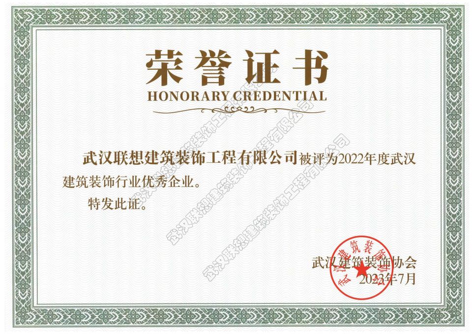 2022年度武漢建筑裝飾行業(yè)優(yōu)秀企業(yè)
