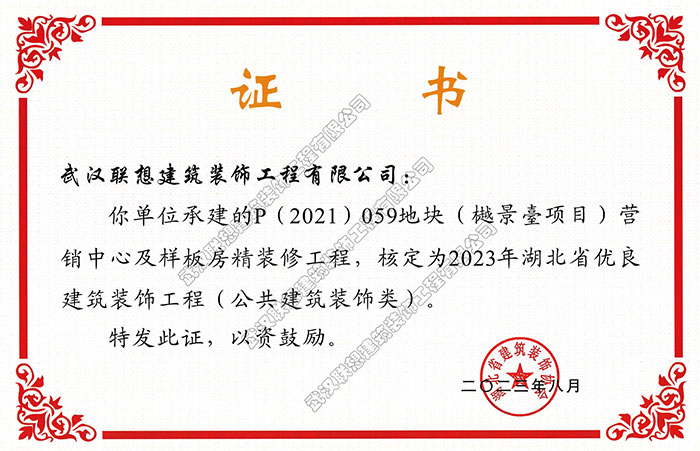 2023年湖北省優(yōu)良建筑裝飾工程(P (2021 ) 059地塊(樾景薹項目)營銷中心及樣板房精裝修工程)
