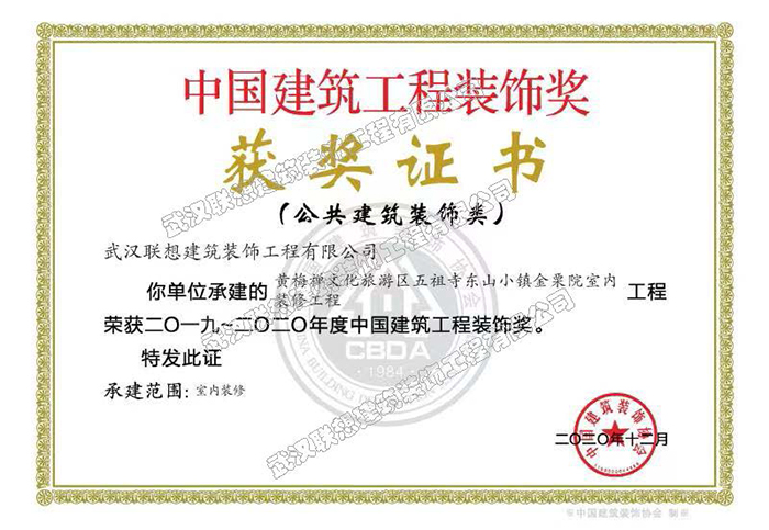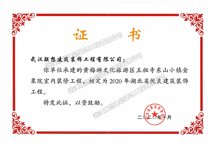 2020年度武漢建筑裝飾行業(yè)優(yōu)秀企業(yè)